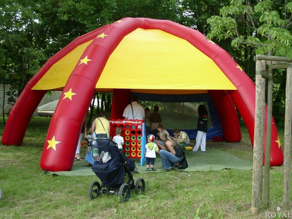Unser Partydome zeichnet sich durch schnellen Auf- und Abbau im Veranstaltungsbereich aus. Idealer Sonnen- und Regenschutz für Ihr Equipment oder Sitzgelegenheiten sowie auch für unsere Spielmodule z. B. Bullriding, Creativ Club, Mal- und Bastelstraße, alle Simulatoren... Das Zelt kann umlaufend geschlossen werden mit Seitenteilen ( 4 Fenster, 1 Tür)