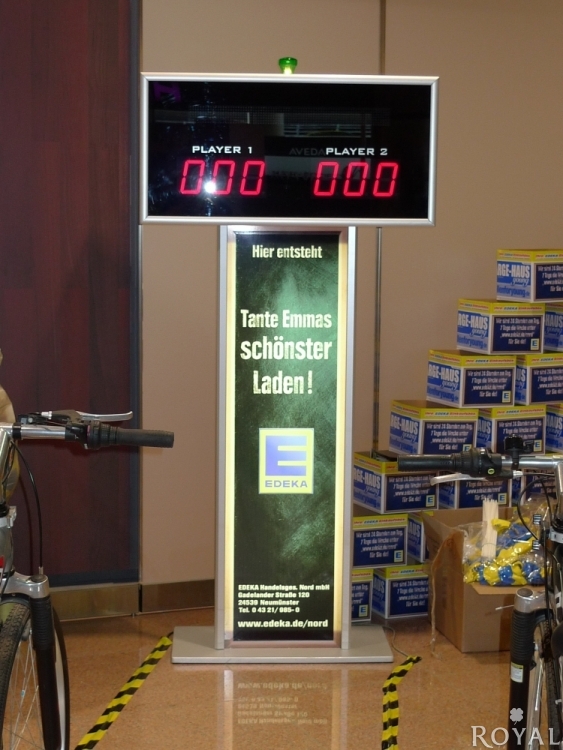 Wettbewerbsgerät für Groß und Klein inkl. hochwertiger Standpylone mit Beleuchtung und mehrfarbiger LED-Laufschrift. (Wir programmieren Ihre Werbebotschaft in die Anzeige z. B. Aktionstage bei ... etc.).