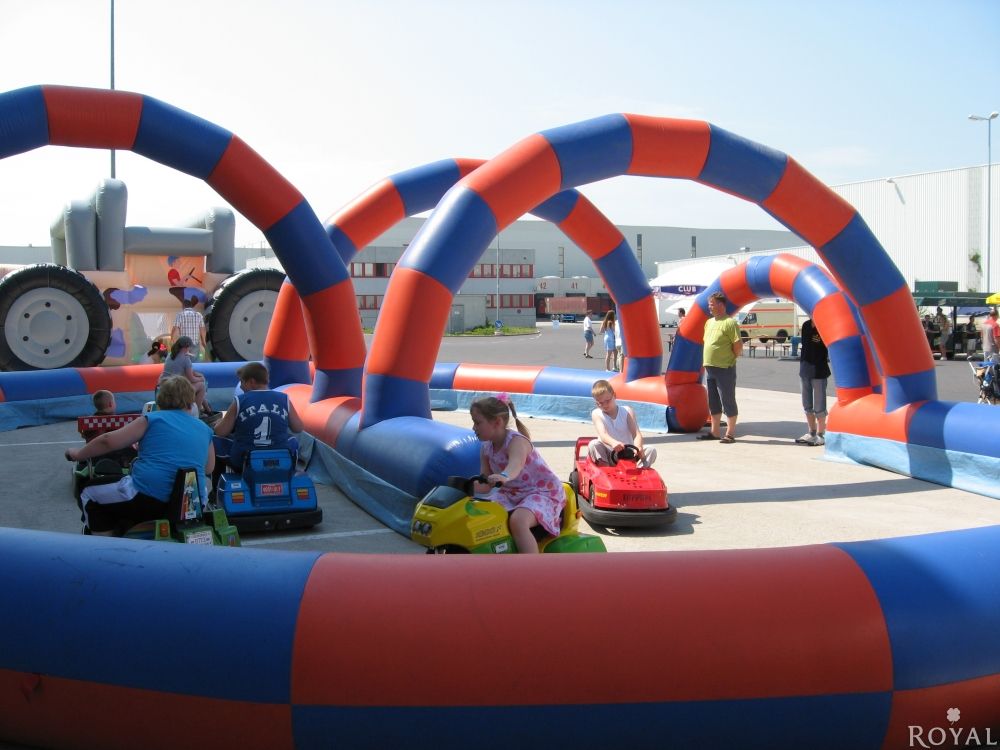 Unsere Mini Scooter Bahn ist für jegliche Art von Veranstaltung immer ein großer Spaß. Wir stellen Ihnen im Standardpaket 3 Fahrzeuge (gemischt Autos, Motorräder) im Parocurs aus Balken und Reifen zur Verfügung. Weiterhin können Sie einen aufblasbaren Fahrbahnparcours 10mx 15m zusätzlich zu buchen (gegen Aufpreis).