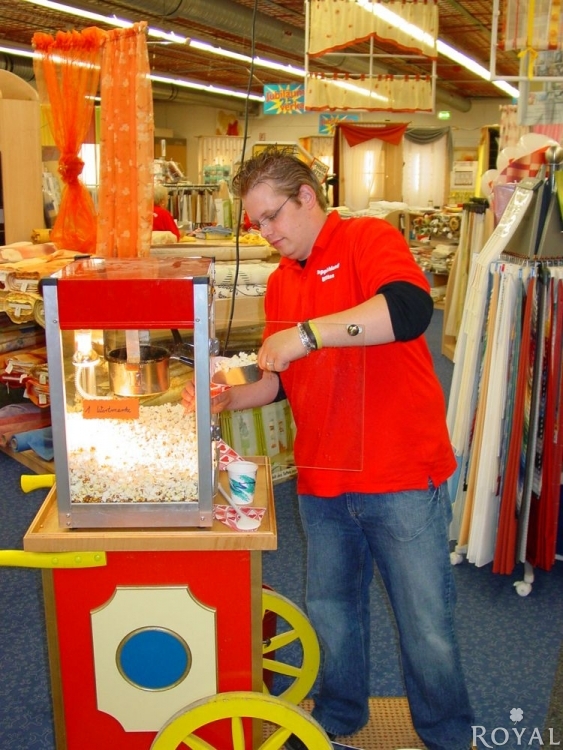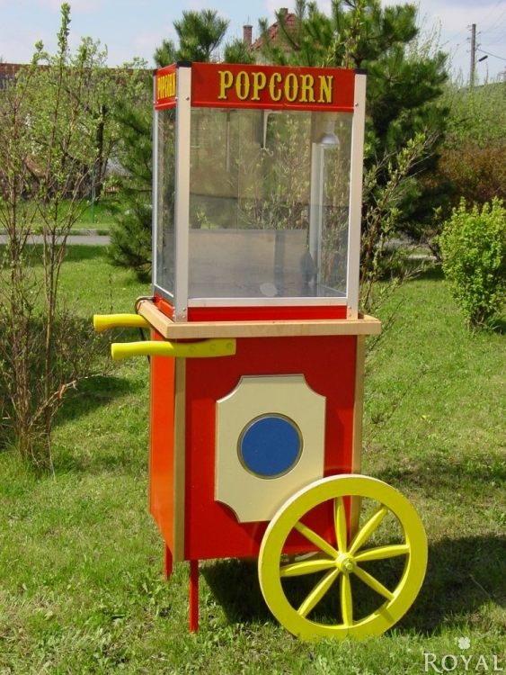 Wir liefern Ihnen unseren nostalgischen Fahrwagen als Zubehör für unsere Popcornmaschinen inkl. Tür für kleinen Stauraum.