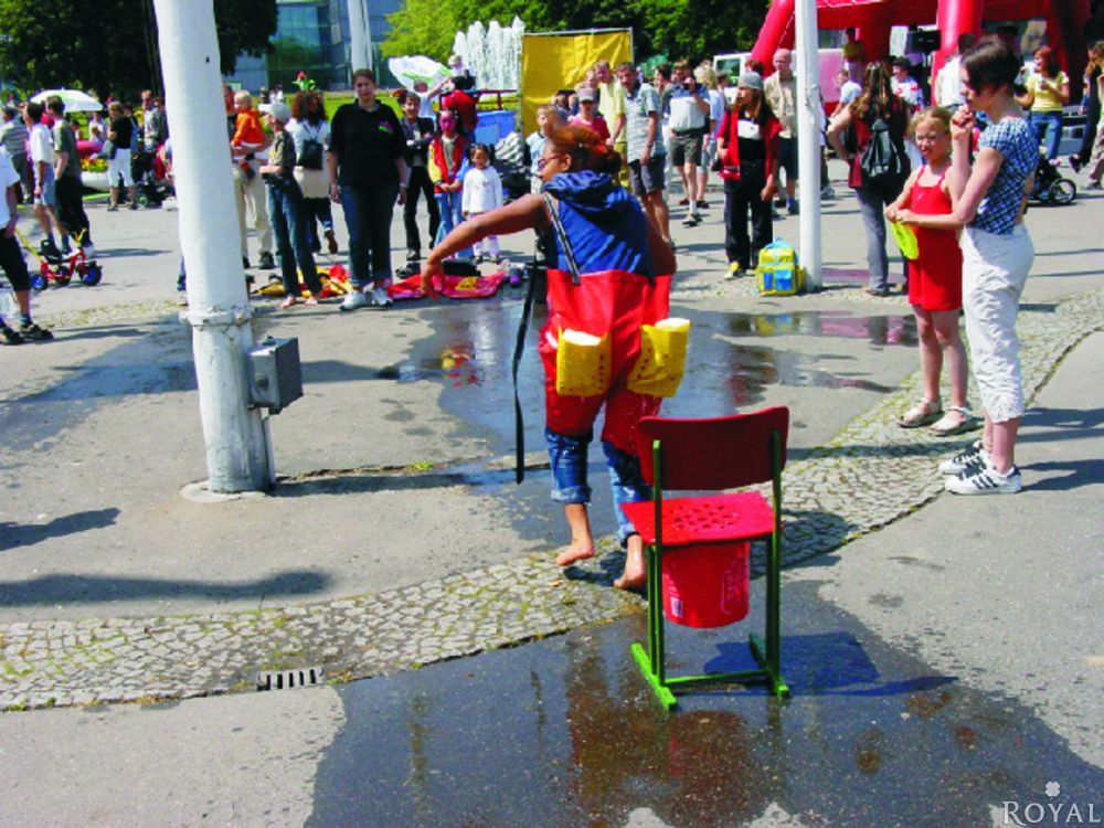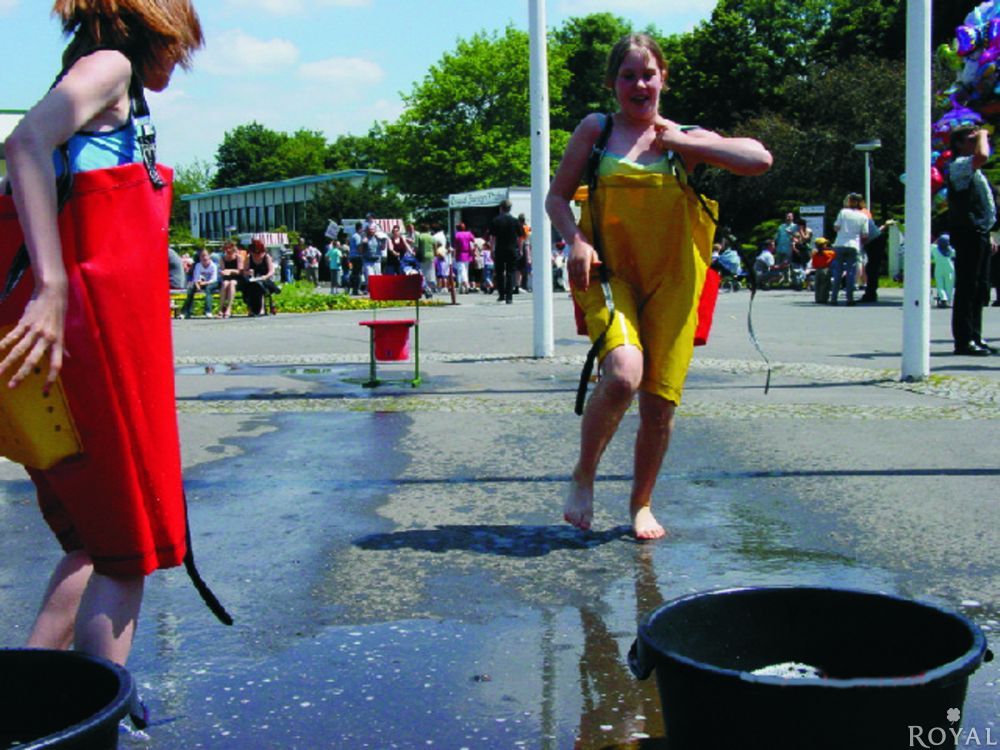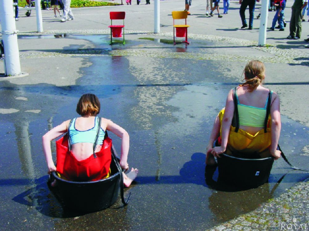 Dünnschissrennen, ein Spaß den keiner so schnell vergisst! Der Gaudi für Ihr Sommer- und Sportevent, Beach-Party, Mitarbeiterfeten etc. Mit einer speziellen Hose setzt man sich in einen Behälter mit Wasser und läuft danach schnellstmöglich zu einem Stuhl. Auf diesen drückt man die Hose mit den gesammelten Wasser aus. Wer am Ende das meiste Wasser im Eimer hat, ist der Gewinner! Eine Mordsgaudi für Kinder und Erwachsene. Wir liefern Ihnen das komplette Equipment für jeweils 2 Teilnehmer ob Kinder oder Erwachsene.