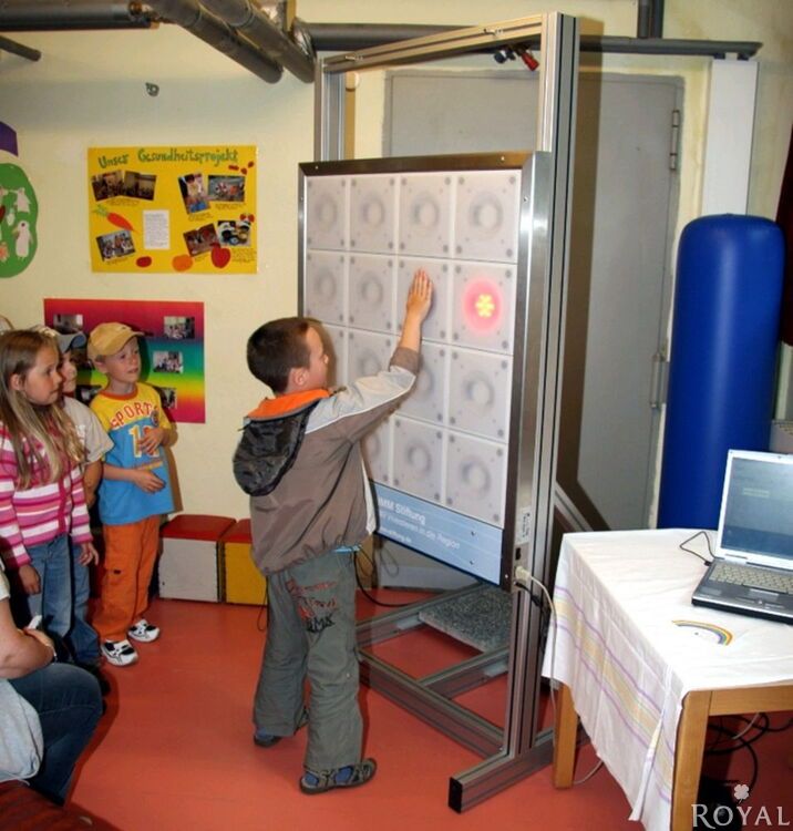 Aktive, moderne Reaktionswand für Groß und Klein sowie für jeden Anlass. Ein echter Anziehungspunkt auf Messen etc. Die leuchtstarken LEDs sind schon von Weiten sichtbar sowie auch die Masse an Zuschauern, die vor der Reaktionswand stehen.