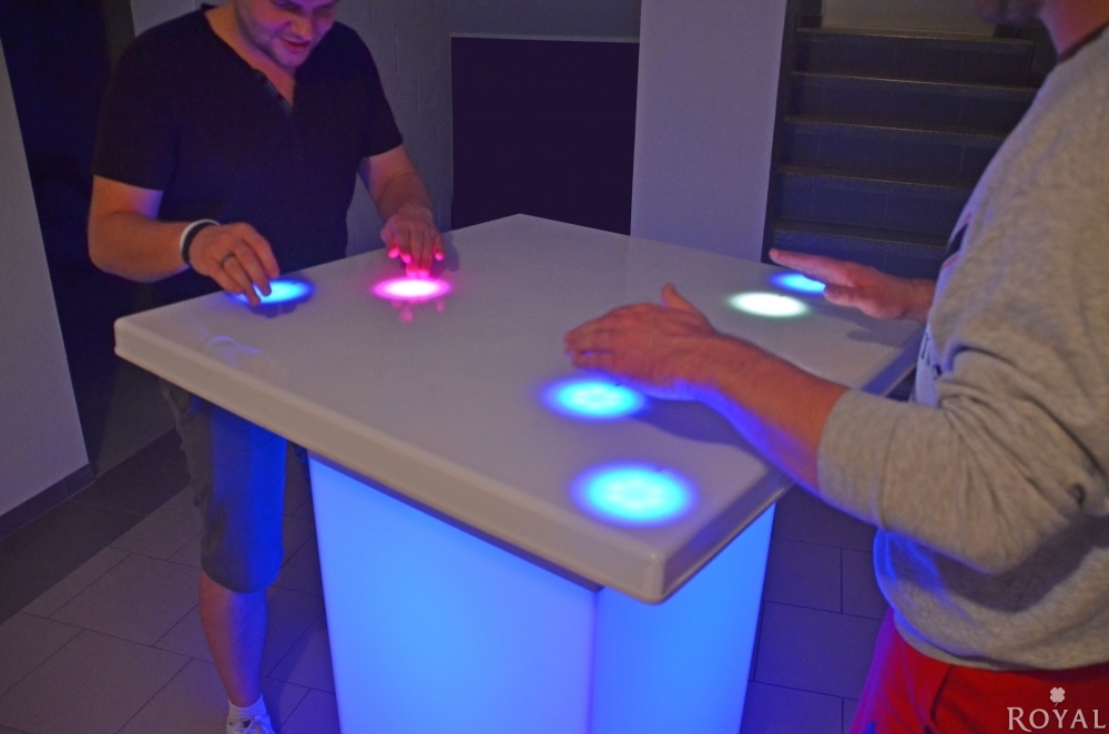 Packende Interaktion, Spiel, Spaß und jede Menge Action für Ihre Firmenfeier, Tagung, Weihnachtsfeier, Messeauftritt oder anderen Events. Dieses Eventmodul wird Ihre Freunde, Kollegen und Angestellten fesseln. Durch die wechselnde LED Beleuchtung fällt der Tisch schon von weitem auf und zieht Leute an.