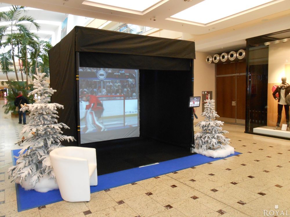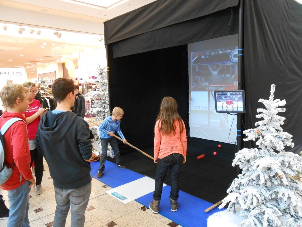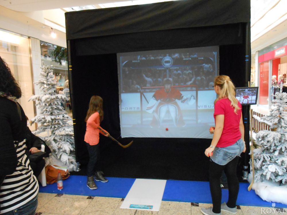 Tauchen Sie ein in die reale Welt der interaktiven Sport-Simulation! Unser Visual Sportpaket ist eine Attraktion, die Sie so noch nicht erlebt haben. Der 3 m interaktiver Bildschirm ermöglicht es dem Spieler authentisch Fußball, Eishockey, Baseball, Basketball und American Football zu spielen. Verwenden Sie echte Schläger und Bälle - schlagen, werfen und treten Sie so hart wie Sie können und erhalten eine Echtzeit-Ergebnisrückmeldung.