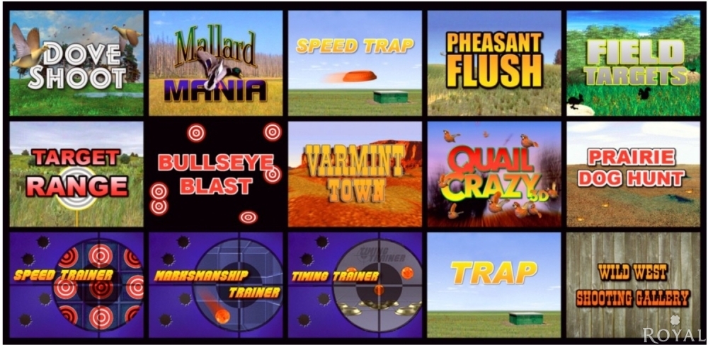 Sicheres, unterhaltsames interaktives Schießspiel mit einer Auswahl von verschiedenen Spiel-Szenarien wie z. B. Wild West Schießbude, Laufende Scheibe, Tontauben, Zielscheiben, Wildenten, Verrückte Wachteln, Schnelligkeitstraining u.v.m.
