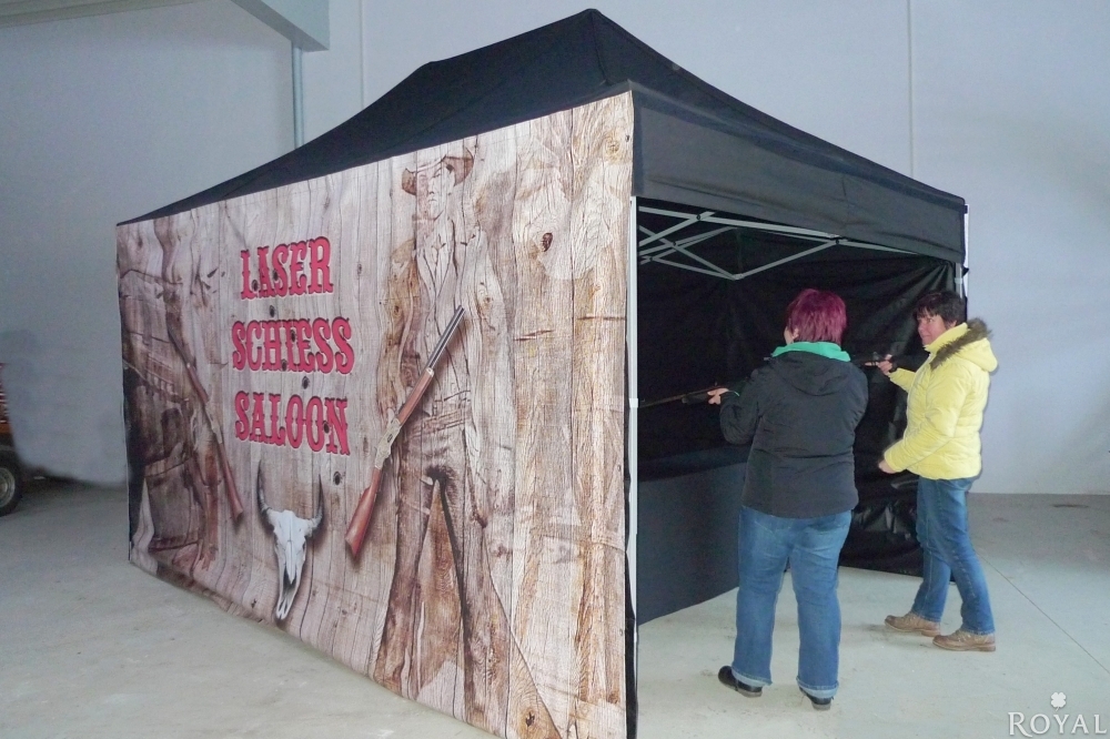Sie können zwischen einen Gewehr oder Pistole in authentischer Größe und Form wählen. Diese sind rückstoßfrei und feuern einen sicheren Laserstrahl auf die verschiedenen Ziele ab. Unser Laser Shooting wird in einem schwarzen Faltzelt komplett im Westerndesign geliefert. Das Spiel wird über PC mittels Videoprojektor auf eine 2m breite Leinwand projiziert.