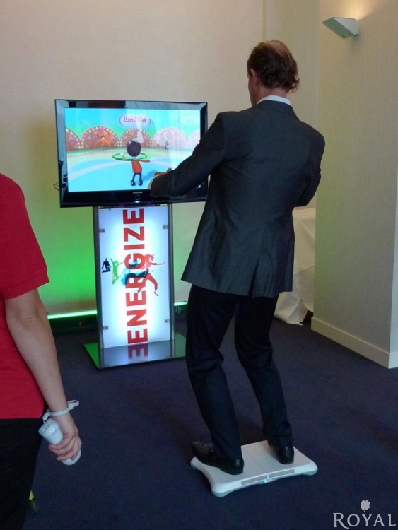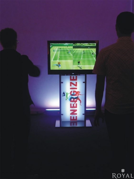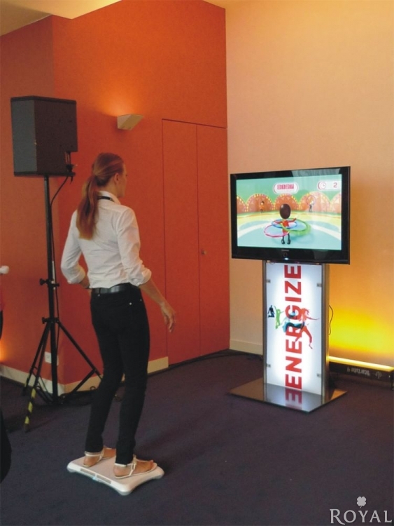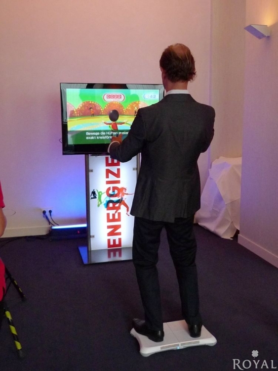 Wir liefern Ihnen dazu eine edle Standsäule mit großen LCD Bildschirm. Im unteren Bereich ist eine hochwertige weiße satinierte Plexiglasscheibe mit LED Hinterleuchtung angebracht. Diese kann mit Ihrer Werbung, Logo, Slogans im 4C-Digitaldruck individuell gebrandet werden kann. (gegen geringen Aufpreis). Sie können aus Wii-Sports (Tennis, Baseball, Bowling, Boxen, Golf) oder Wii-Fit inkl. Balance-Board (Yoga, Muskelübungen, Aerobic, Balancespiele, Kopfballtraining, Tanztraining, Skiabfahrt) wählen.