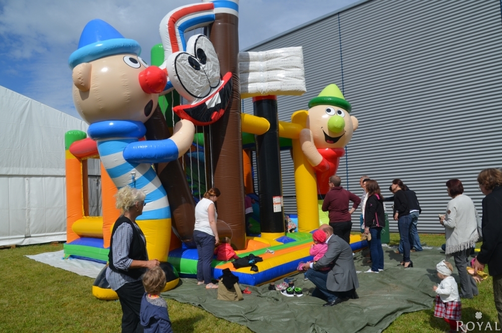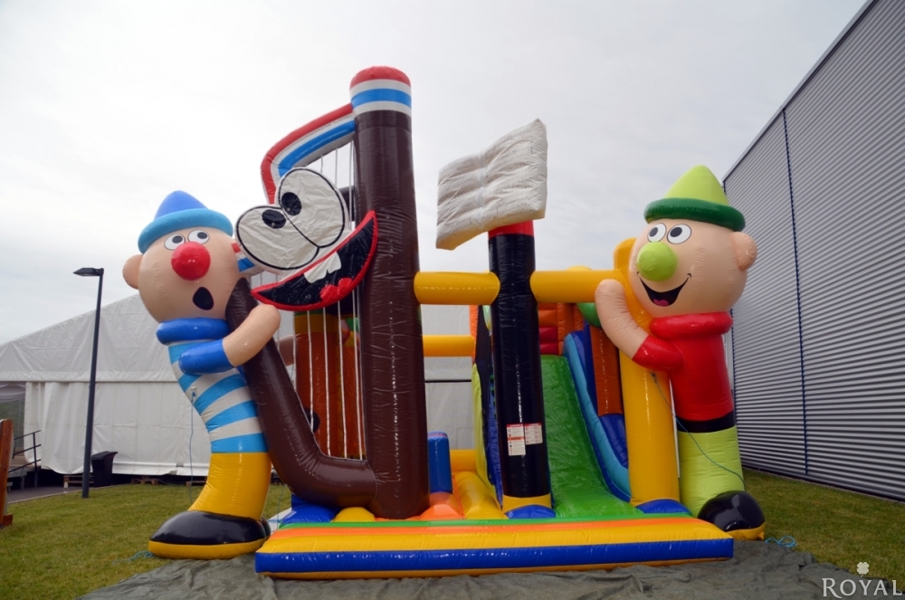 Großartiges Erlebnisspielgerät aus einer Kombination von Hüpfburg und Rutsche. Zwei riesige Figuren bitten zum Eintritt in ein lustiges Spiel- und Spaßerlebnis.