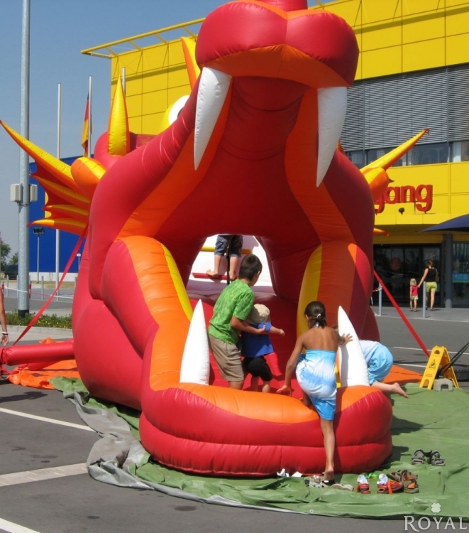 Unsere XXL Riesenrutsche Dragon Slide im Drachendesign. Aufgrund des attraktiven Designs haben Sie einen absoluten Eyecatcher für Ihr Event.