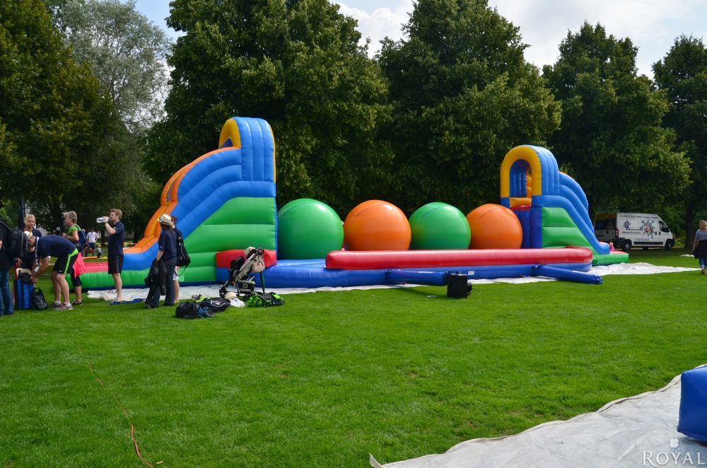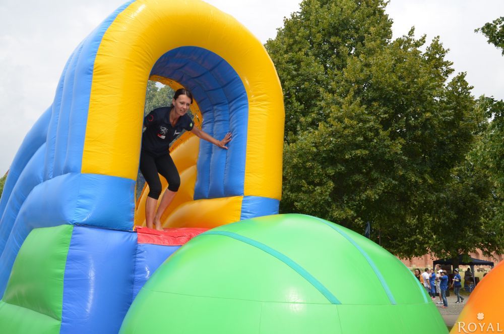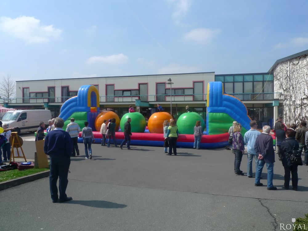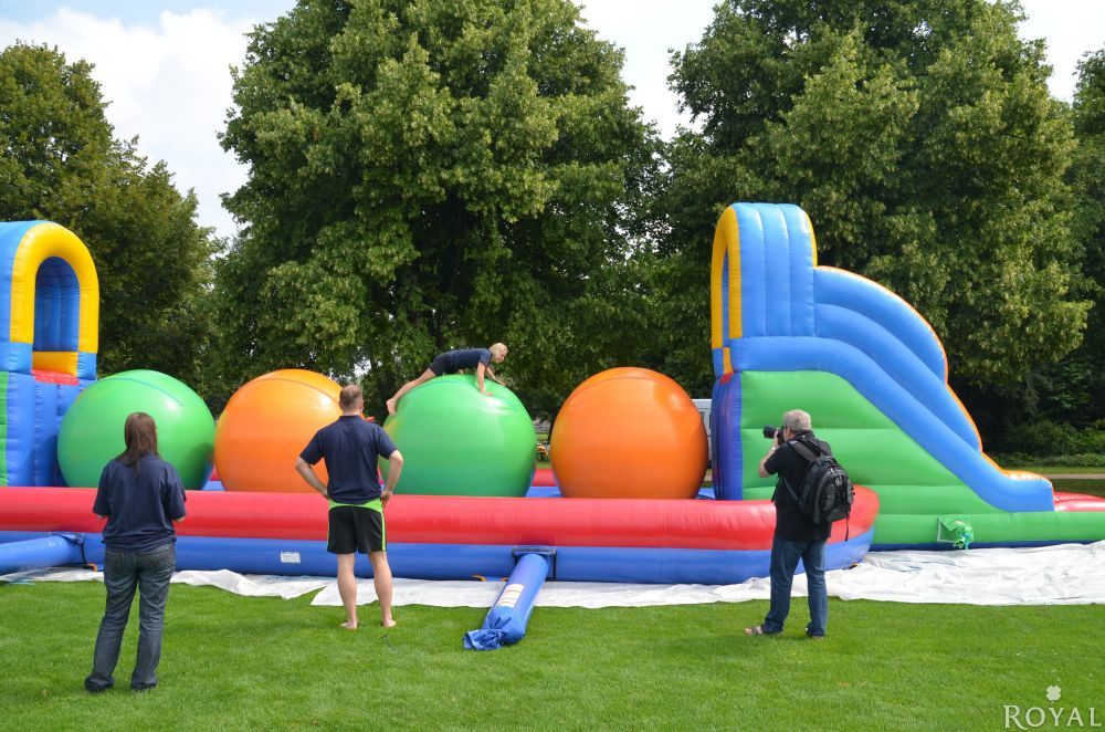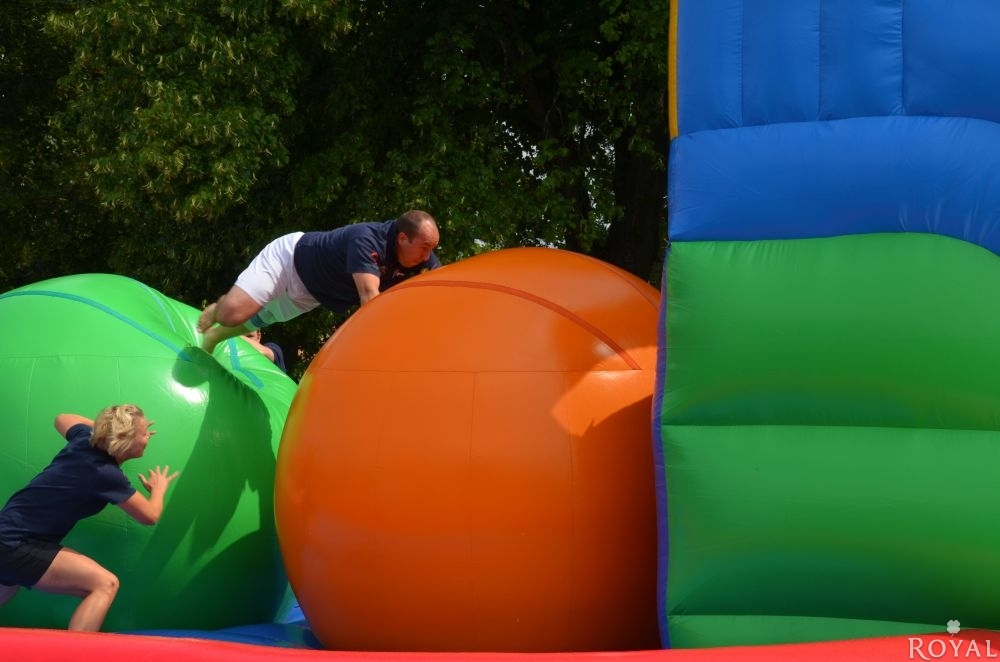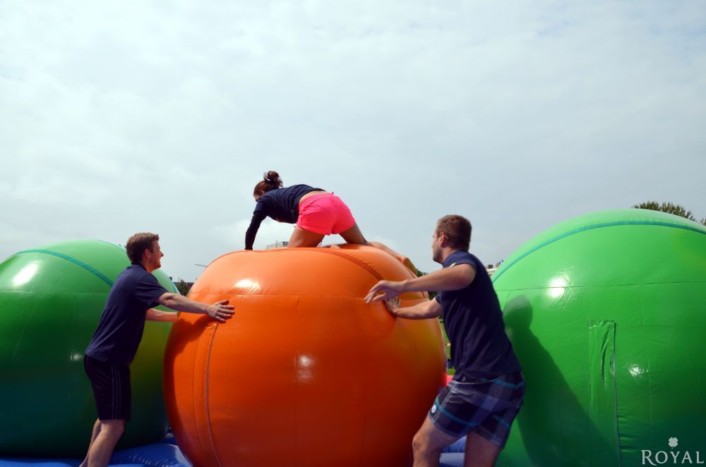 Ein 17m langer Hindernisparcour mit neuen Schwierigkeitsgrad. Es ist nicht einfach über diese riesigen, wabbelnden Bälle zu laufen und die andere Seite zu erreichen. Nicht jeder Kandidat wird das Ende erreichen, ohne auf die weiche aufgeblasene Matte zu fallen. Eine Gaudi für Groß und Klein mit großen Spaßfaktor und Wettbewerbscharakter.