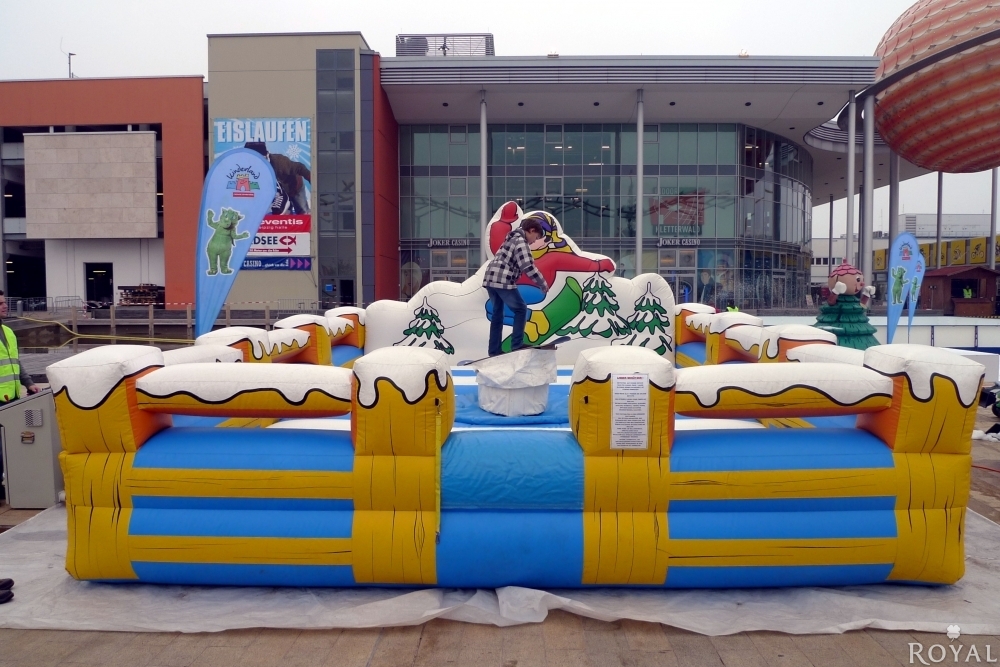 Ob als Bulle-, Fussball-, Flasche-, Rentier-, Ente- oder im Bratwurst-Design, wir haben für fast jeden Anlass den passenden Aufsatz für unsere Rodeo Simulatoren. Alle Rodeo Simualtoren sind vollelektronisch und stufenlos gesteuert. Durch die große Zeitanzeige ist das Gerät ideal für Wettbewerbe einsetzbar. Das aufgeblasene Fallkissen (d=5m) ist in verschiedenen Modellen (Western, America, Winter, Welle, ...) erhältlich.