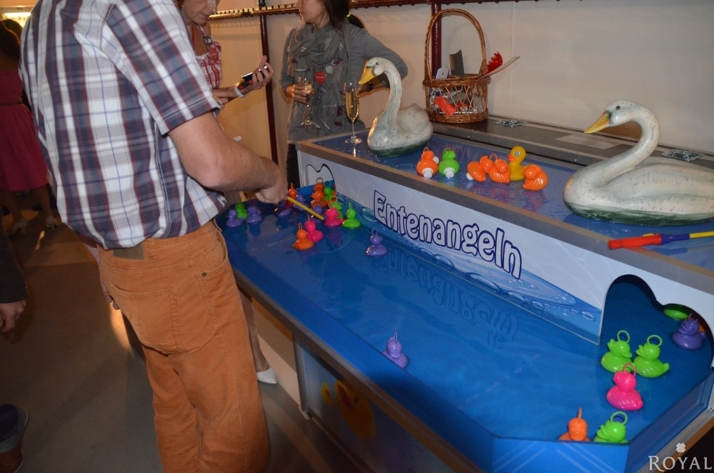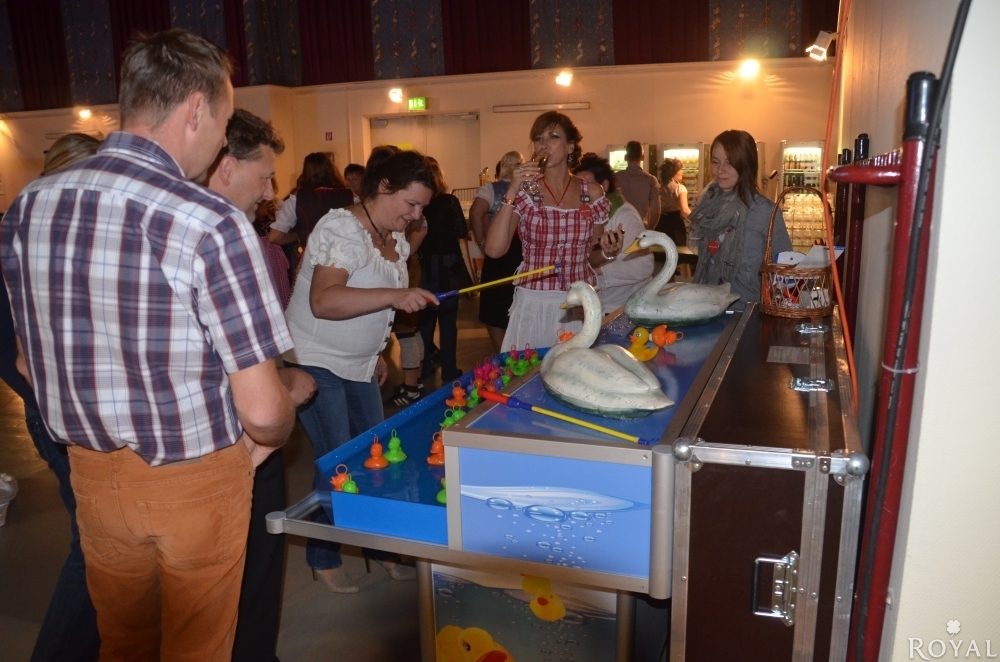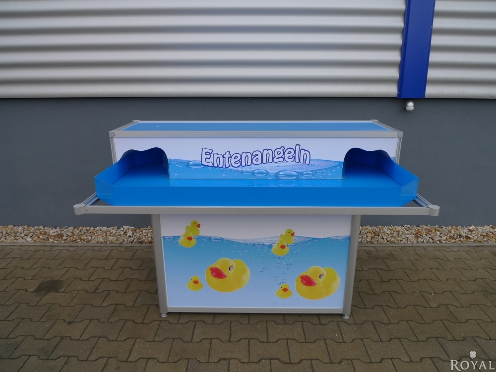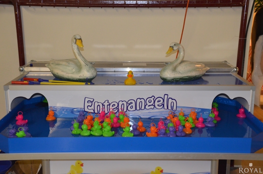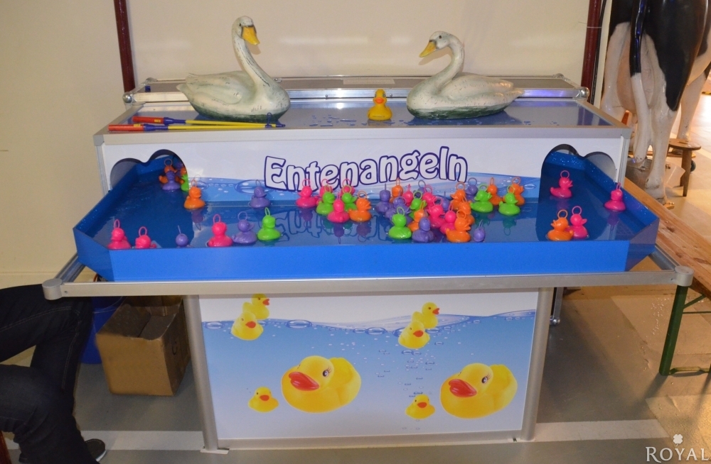 Dieses Eventgerät ist aus unserer eigenen Produktion und für Gewinnspiele bestens geeignet. Spielend angeln sich die Teilnehmer aus dem Wasserbecken, welche mit einer Strömungsanlage angeschlossen ist, die bunten Enten. Auf der Unterseite der zu angelnden Enten sind teilweise mit Punkten angebracht, so können Sie auf lustige Weise Kleinpreise an Ihre Gäste verteilen.