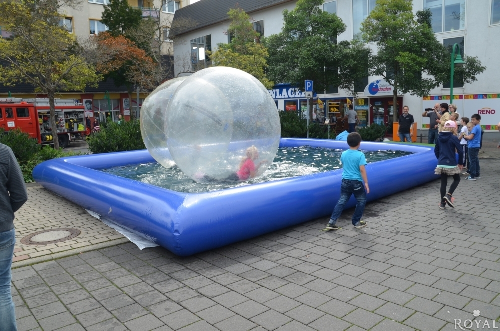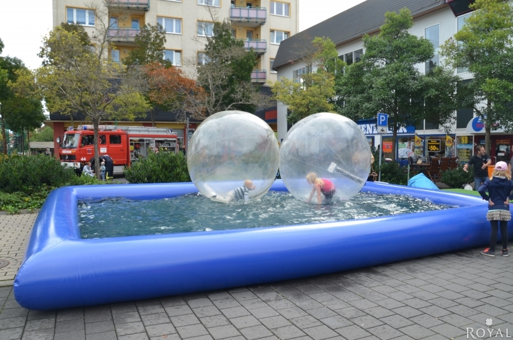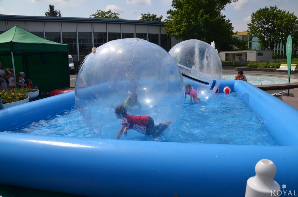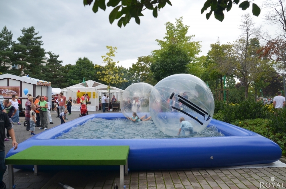 Ein unglaublicher Spaß auf Ihren Event. Mit einem 2 Meter Durchmesser großen und transparenten Ball laufen Sie buchstäblich übers Wasser - ohne nass zu werden! Den Water Walking Ball kann man auf allen sicheren Wasserplätzen mit Betreuung und einer max. Wassertiefe von 30cm benutzen. Standardmäßig liefern wir Ihnen einen aufblasbaren Pool dazu. Das Befüllen und Entleeren übernimmt der Mieter.