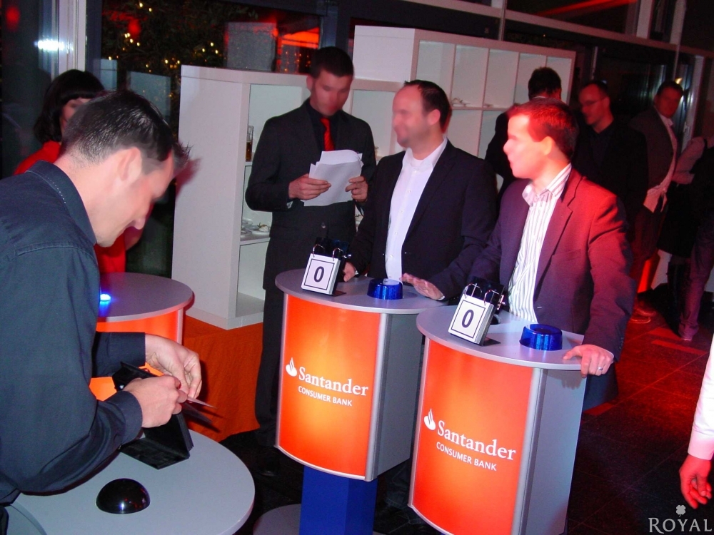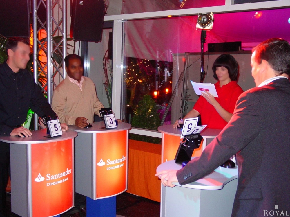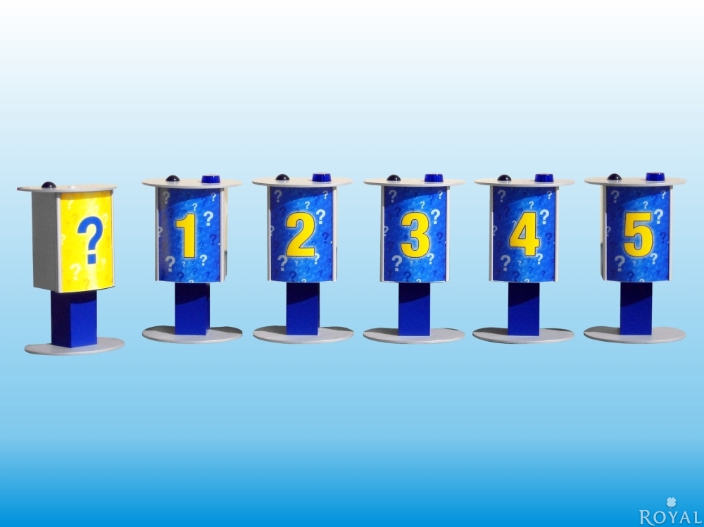 Moderne Buzzeranlagen sind längst aus dem Fernsehen bekannt. Ein sehr interessantes Wettbewerbsspiel aus unserer eigenen Produktion, welches in verschiendene Varianten buchbar ist. Unser Buzzeranlage wird bei Quiz Shows eingesetzt bei dem bis zu 8 Kandidaten gegeneinander spielen können. Beim Drücken des Buzzers erfolgt ein optisches und akustisches Signal. Alle anderen Teilnehmer sind gesperrt. Ein Resetknopf zur Wiederfreischaltung befindet sich auf dem Moderatorenpult.
