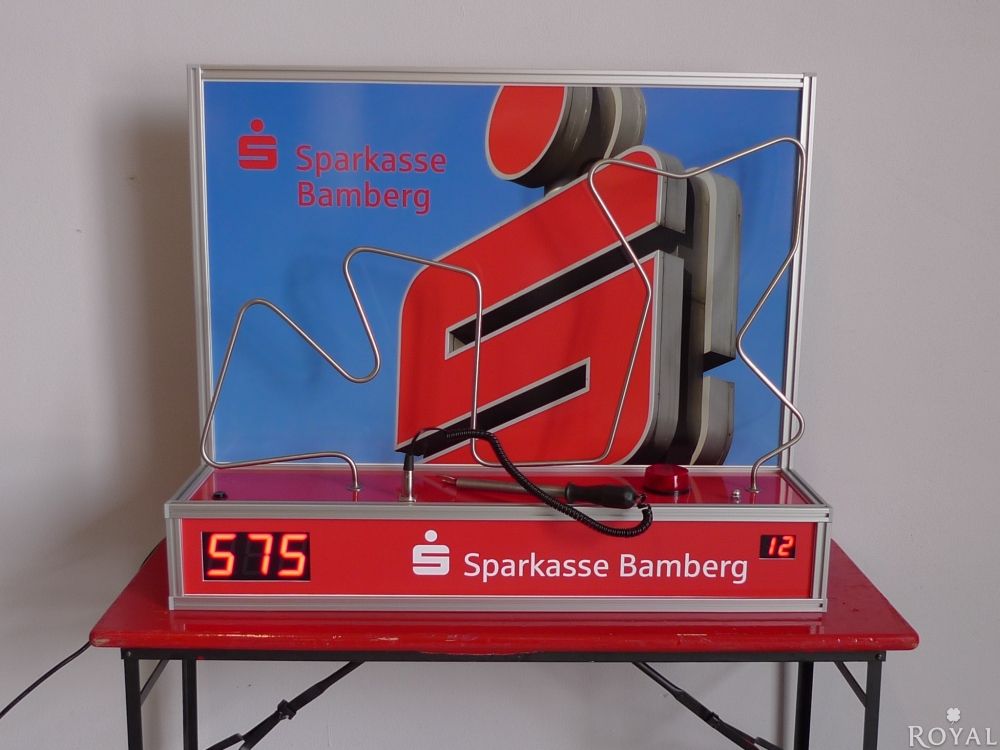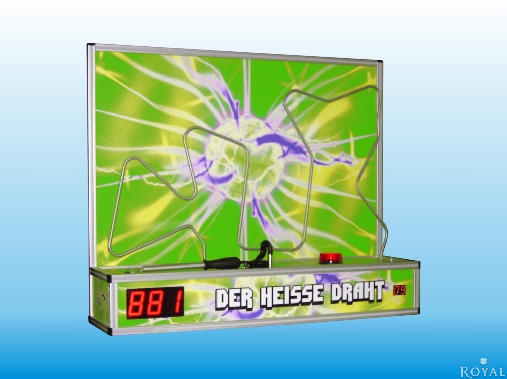 Wer schafft es, ohne den "Heißen Draht" zu berühren ans Ziel zu kommen? Geschicklichkeitsspiel für Groß und Klein mit akustischen und optischen Signal. Der Klassiker als Kleinversion mit zwei digitalen Punkteanzeige zur besseren Siegerermittlung. Die 3stellige digitale Punkteanzeige beginnt mit 999 Punkten, zählt langsam nach unten und bei Berührung des Heißen Drahtes werden zusätzliche Strafpunkte abgezogen. Die 2stellige Punkteanzeige zählt die Berührungen.